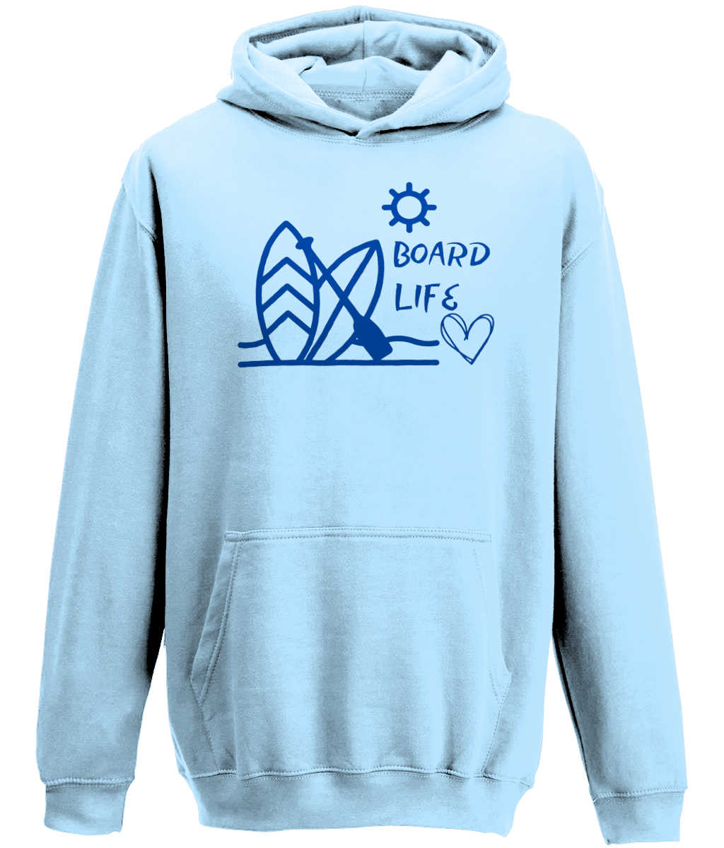 This simple and stylish classic hoodie is available in many vibrant colours. Made from cotton faced fabric. An essential for any hoodie lover and makes a perfect addition to any wardrobe with our Board life logo