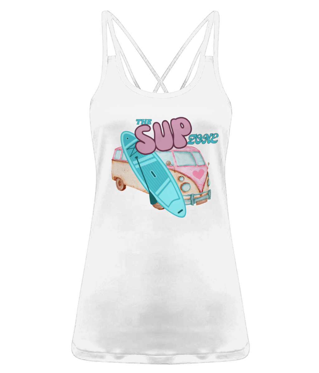 Make a statement in this women's laser cut spaghetti strap vest with our Supzone van design. The soft touch fabric twinned with laser cut detailing make this vest durable and perfect for Paddle or trainingsessions in any season.
